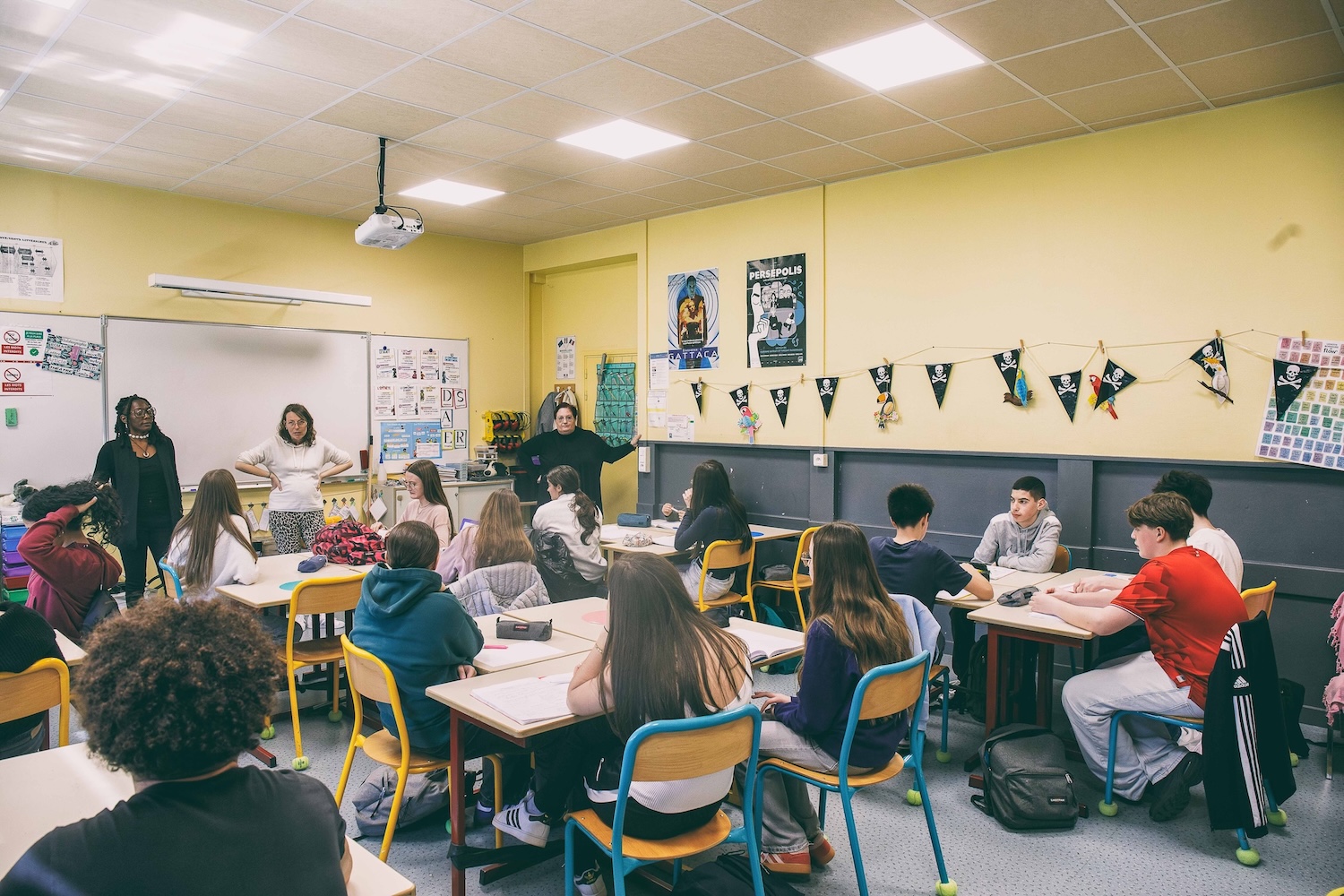 Du 16 au 19 mars, nous nous sommes rendus dans les collèges de Rochechouart, Saint-Junien, Châlus et Châteauponsac, dans le cadre du parcours laïque et citoyen du Département de la Haute-Vienne . Lors de cette semaine, les collégiens·nes ont assisté à une lecture du texte en cours d’écriture de l’autrice congolaise Merveille Biangani Makessi, ’Formatage’, autour des thématiques des réseaux sociaux, de l’intelligence artificielle et du cyber-harcèlement, mis en voix par la compagnie locale Méthylène Théâtre.