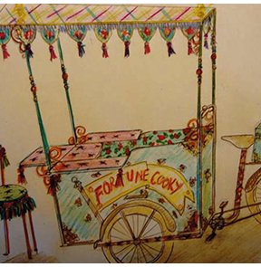 Fortune Cookie c’est un monde en soi, un théâtre minuscule et mobile qui se déplace avec l’agilité de deux tuk tuk colorés. Conduit par un comédien et une comédienne dans les rues, sur des places, au détour d’un trottoir, ils se posent là où personne ne les attend. Tels deux îlots intrigants. Les comédiens y invitent ceux qui n’avaient pas prévu forcément de s’arrêter, pour une courte pause théâtrale, qui suffit à les transporter vers un ailleurs. Sous la toile du tuk tuk multicolore, le passant-spectateur tire une carte de tarot divinatoire au dos de laquelle figure un proverbe. À partir de là, une confession s’engage en tête à tête, une histoire monologue que l’écriture de trois auteurs contemporains transforme en pensées magiques et voyages imaginaires.