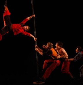 Corps tendus ou tordus, diabolos flottants sur le fil de l’imaginaire, balles rebelles et mât fuyant la verticale sont les instruments de leur rencontre.