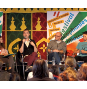 En marge du spectacle La Loi de la gravité, le festival a eu l’idée de donner la parole aux adolescents : les questions sur l’écriture pour ados posées par des ados. Deux collégiens, après avoir collecté les questions de leurs camarades de classes, se formeront au rôle de médiateur. En public, ils s’entretiendront avec deux auteurs québécois sur ce qui les motive à écrire « pour » les adolescents, tenteront de savoir si c’est une démarche d’écriture spécifique...