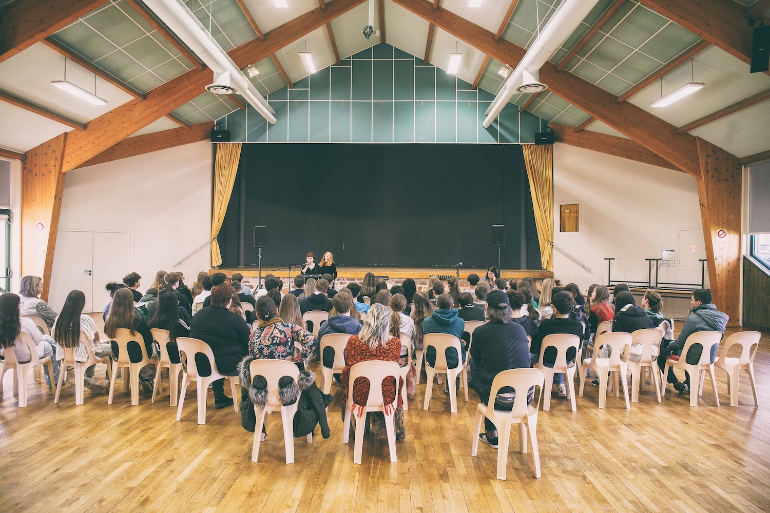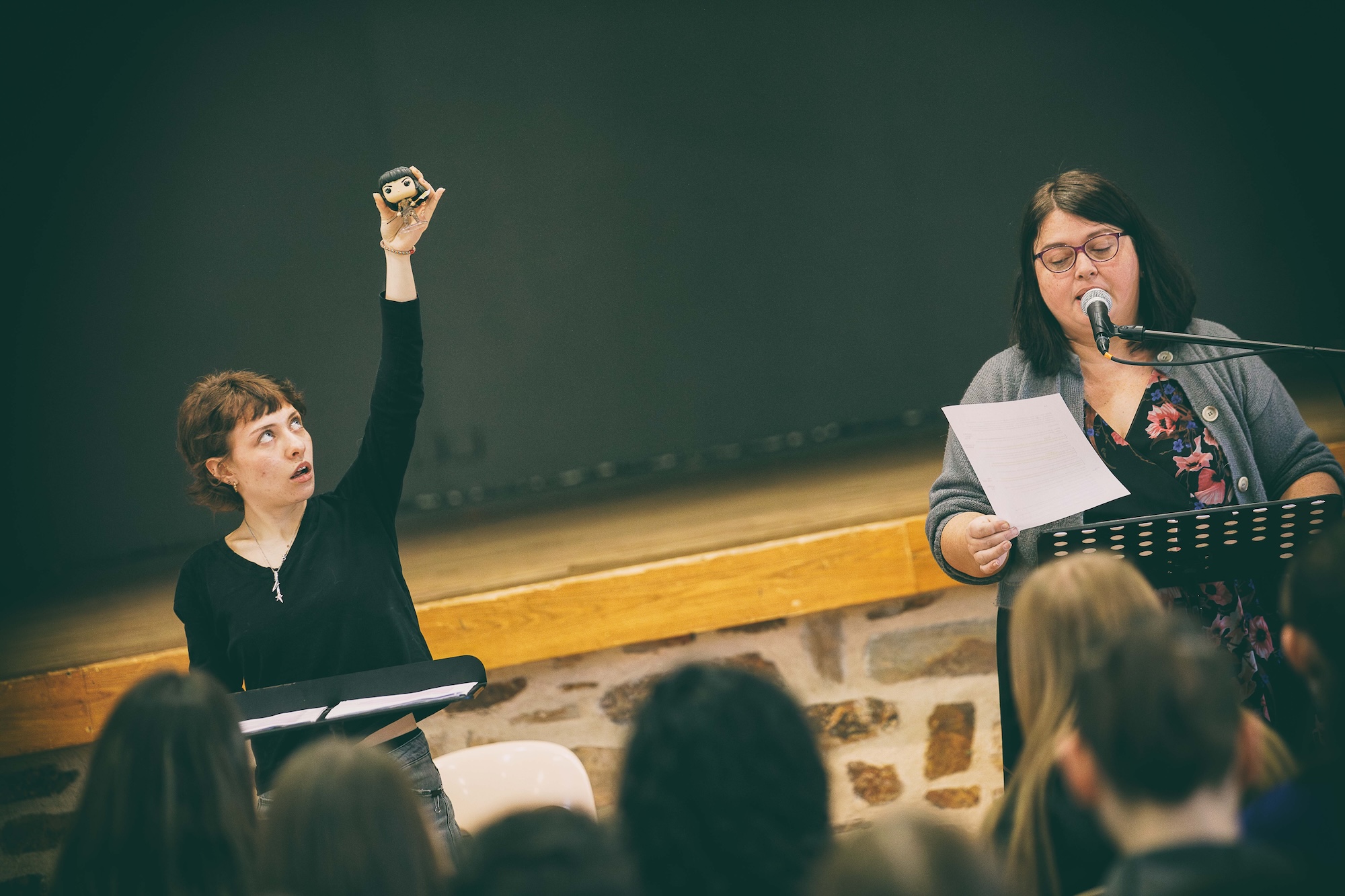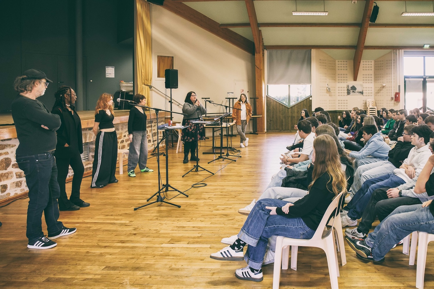 Du 16 au 19 mars, nous nous sommes rendus dans les collèges de Rochechouart, Saint-Junien, Châlus et Châteauponsac, dans le cadre du parcours laïque et citoyen du Département de la Haute-Vienne . Lors de cette semaine, les collégiens·nes ont assisté à une lecture du texte en cours d’écriture de l’autrice congolaise Merveille Biangani Makessi, ’Formatage’, autour des thématiques des réseaux sociaux, de l’intelligence artificielle et du cyber-harcèlement, mis en voix par la compagnie locale Méthylène Théâtre.