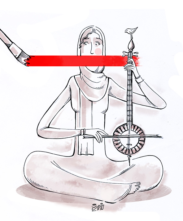 Olympisme, arts et cinéma, éducation... L’empêchement se glisse partout. Avec un trait puissant et un graphisme fort, sans texte, l’œuvre de Firoozeh Mozaffari, ancrée dans la vie quotidienne iranienne, atteint un universalisme qui permet à chacun·e d’être directement touché·e.